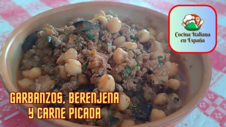 GARBANZOS, BERENJENA Y CARNE PICADA