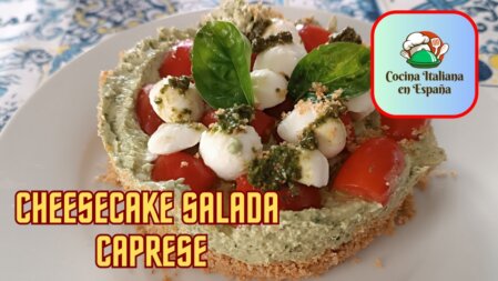 En un bol, mezcla el queso untable con el queso parmesano rallado, las 2 cucharaditas de pesto. Mezcla bien hasta obtener una crema homogénea. - Montar la cheesecake: