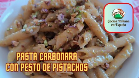PASTA CARBONARA CON PESTO DE PISTACHOS