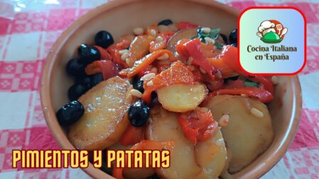 Lava bien los pimientos y hornea a 200 grados durante 25 minutos y enfriarlos. Pela las patatas y córtalas en partes medianos. Pica finamente la cebolla. - Cocinar las patatas
