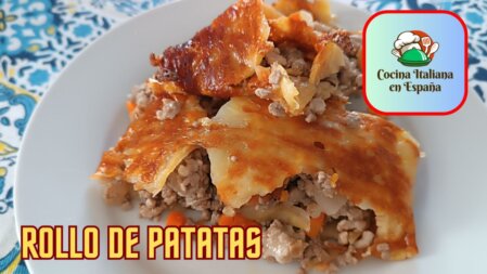 ¡Disfruta este delicioso rollo de patatas crujiente con carne jugosa por dentro!